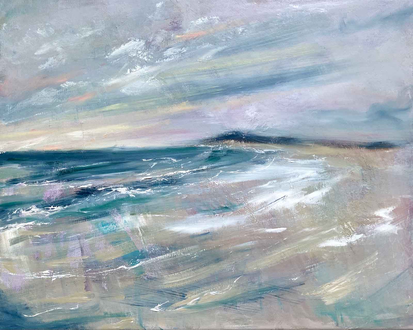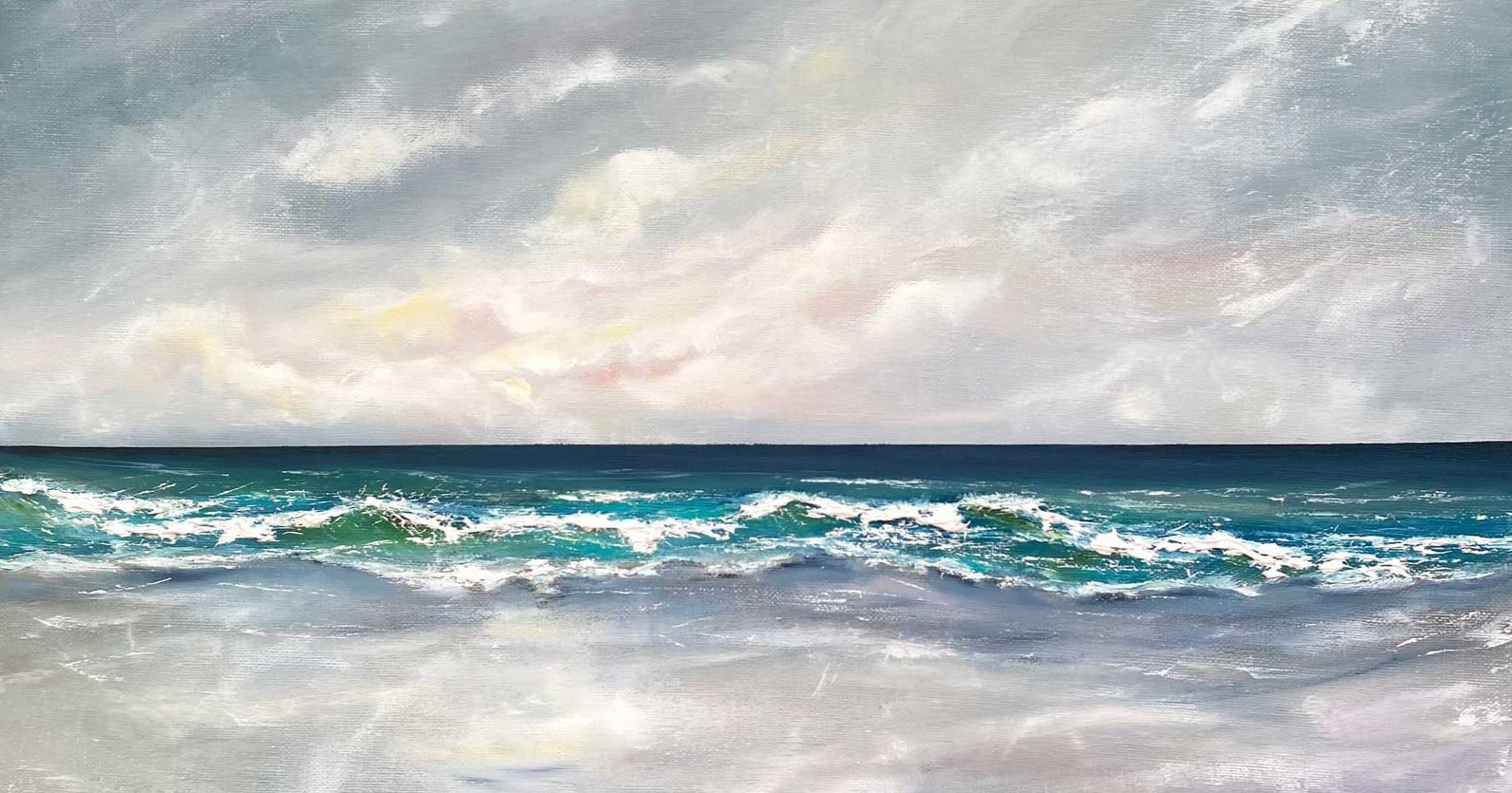 Many artists find choosing titles for their work challenging, Jeanne-Louise muses on this challenge and comes up with both a title and a poem for her latest seascape creation.